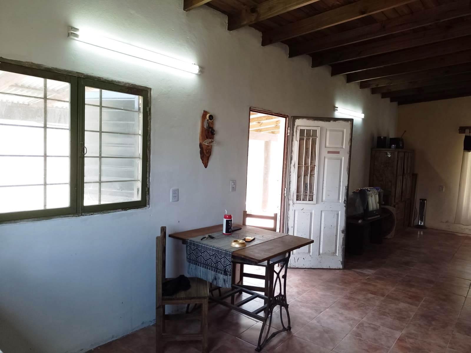 Sobre un amplio lote de 17,32 m. de frente por 43 m. y 40 m. respectivamente en sus laterales se encuentra una casa compuesta de un gran ambiente de 4,50 m. de ancho por 9 m. de largo (aprox.), que puede dividirse o tabicarse internamente (proximamente a realizarse esta mejora), más un sector de cocina y baño instalado. La casa tiene pisos cerámicos y además cuenta con una hermosa salamandra a leña para calefacción. El baño instalado también tiene revestimientos cerámicos al igual que el sector de cocina. Tiene además una galería del mismo largo que la casa (9 m.) por 3,50 m. de ancho que funciona como cochera para dos autos y también quincho,. La casa, por su ubicación dentro del terreno tiene varias posibilidades de ampliación a futuro.